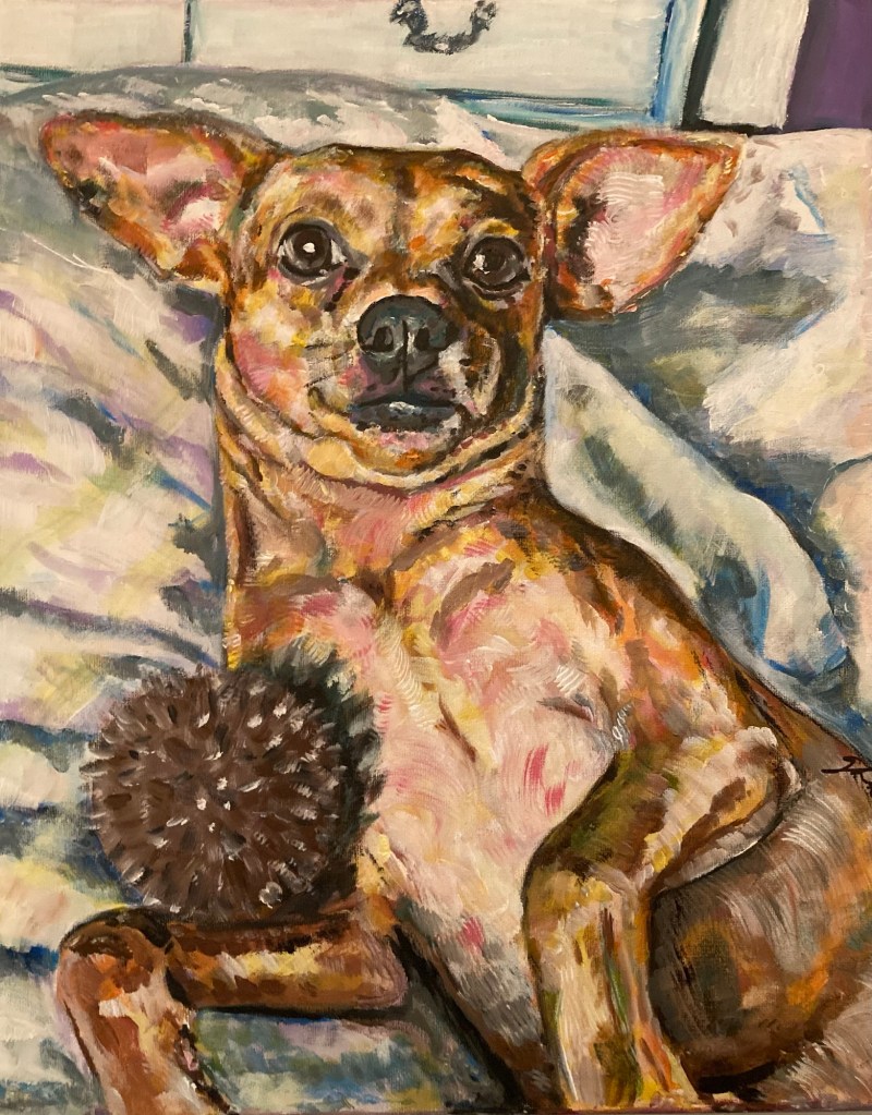 Butters 0 November 24, 2024 Written by Gemma Lavender 16”x20” acrylic Companion piece to Dazzle. Share this: Share on X (Opens in new window) X Share on Facebook (Opens in new window) Facebook